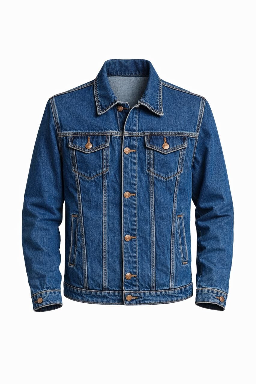 This classic blue denim jacket is crafted for timeless style and long-lasting comfort. Made from premium-quality denim, it features a rich indigo wash, reinforced double stitching, and signature copper-tone buttons for an authentic vintage look. The structured fit, buttoned chest pockets, and convenient side pockets make it both stylish and practical for everyday wear. Ideal for casual outings, streetwear fashion, and year-round layering, this jacket pairs effortlessly with jeans, chinos, or T-shirts. A versatile wardrobe essential designed for men who appreciate durability, comfort, and effortless style.
