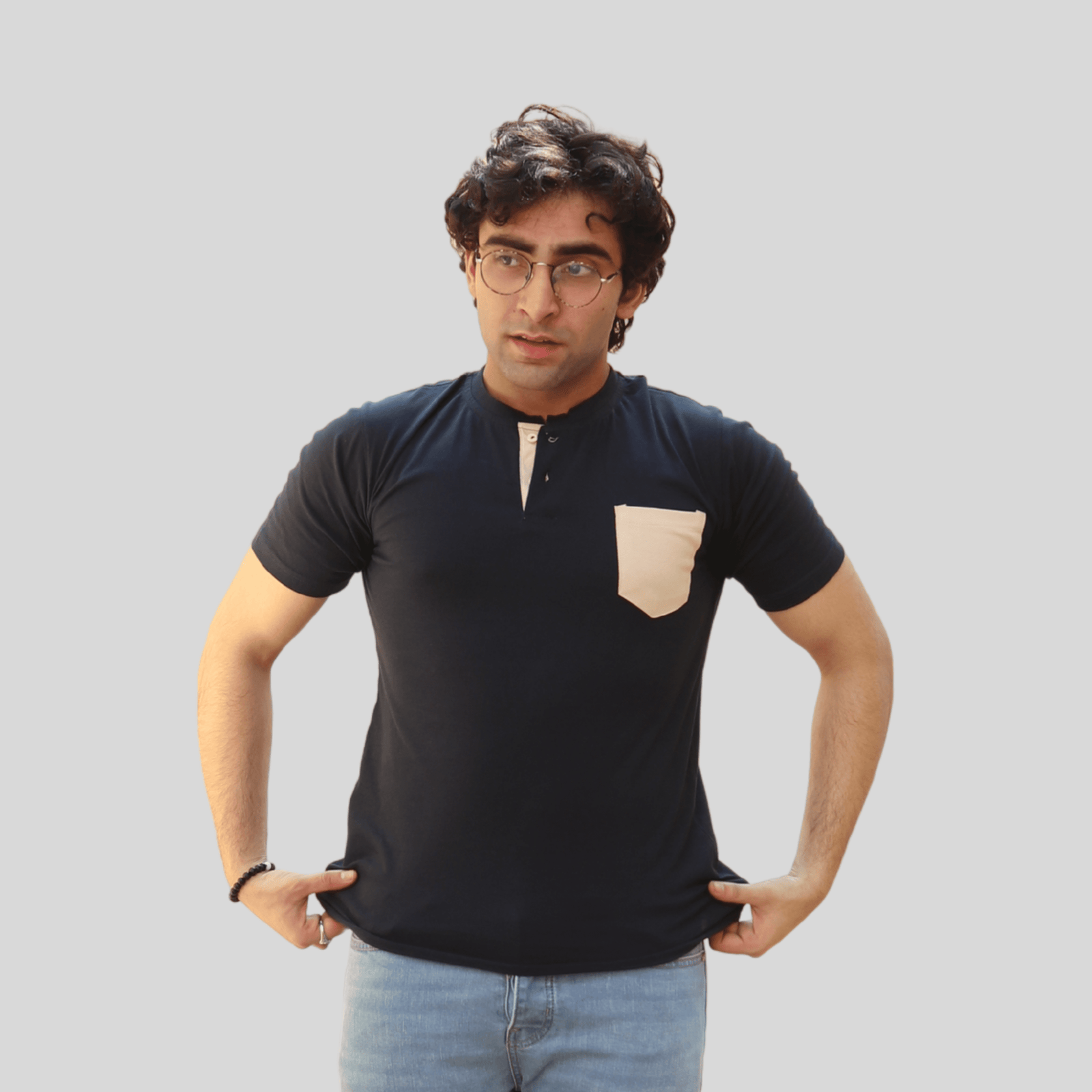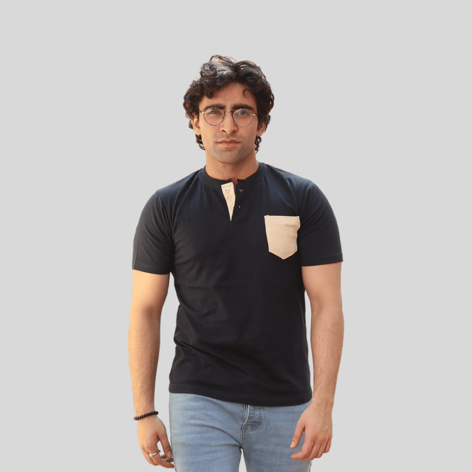 Stand out in style with this Navy & Beige Contrast Henley Shirt, crafted from soft, breathable fabric. Featuring a modern contrast design and a classic buttoned Henley neckline, it offers a perfect blend of comfort, versatility, and premium everyday fashion.